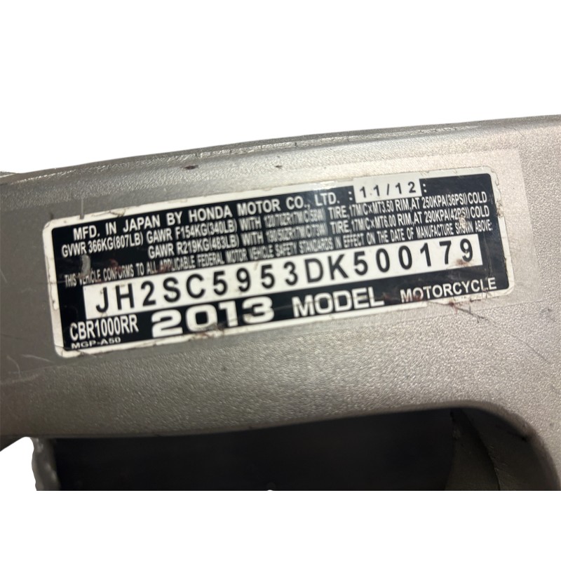 2013 Honda CBR 1000 RR MAIN FRAME SLVG OEM